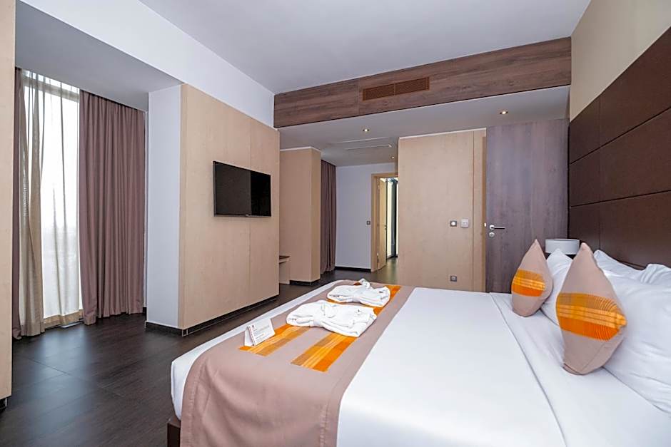 The spacious double room features air conditioning, a mini-bar, a tea and coffee maker, a safe deposit box, as well as a flat-screen TV with cable channels. The unit has 1 bed.